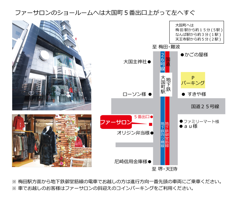 毛皮専門店ファーサロン/会社概要 | 創業57年の関西最大の毛皮店 | 住所 大阪市浪速区大国1-1-1 | 電話 0120-93-4494